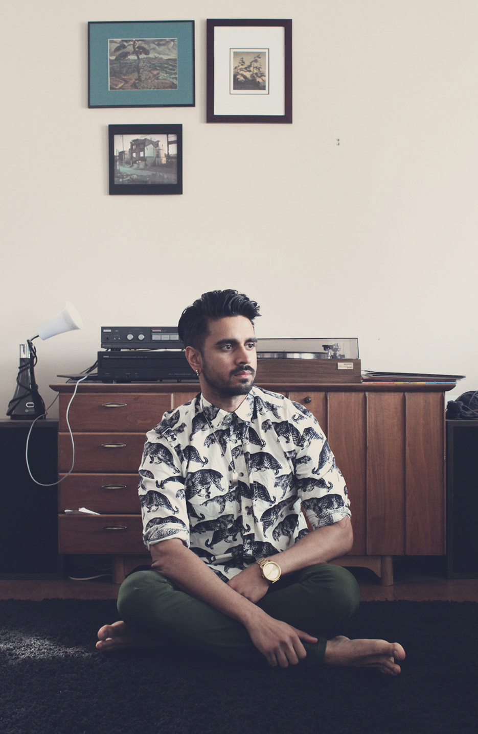 You would think a brown boy in a small and very white city would stand out but I found the opposite to be true. Growing up in Edmonton, I felt I had to work harder to be seen, so it was there that I was my most experimental. Every fashion idea was a good idea, even wearing an onion bag as a hat, a winter scarf as a belt or unplugged headphones around my neck. I even carried apples as “an accessory” for a while.
