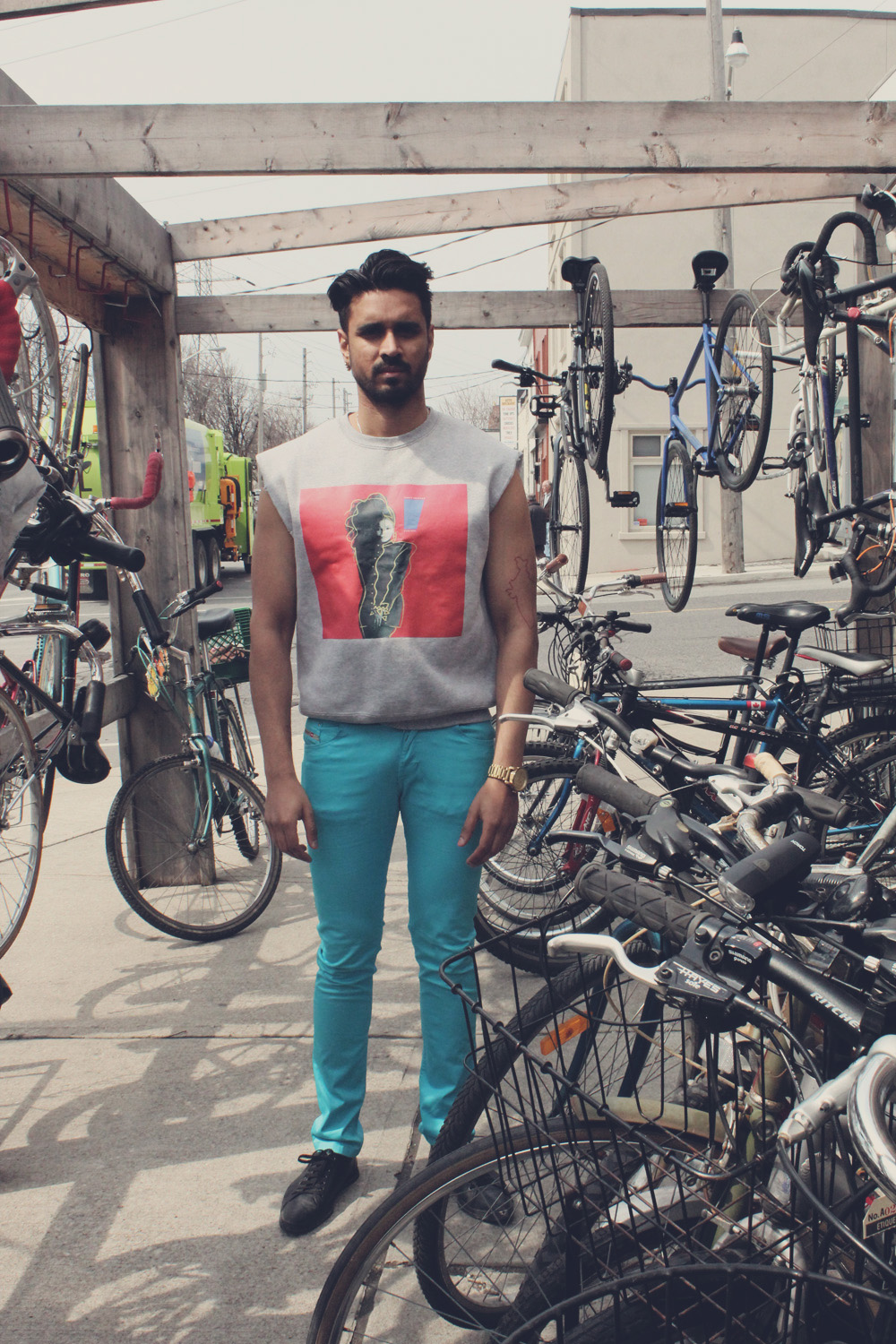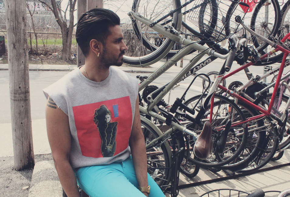 Vivek Shraya does all the things: sings, writes, talks, makes movies, makes shirts and can take a flattering picture of you. We’ve been collaborating for several years and I’m also lucky enough to call him my friend, ma boo. He’ll likely be taking most of the photos of me but this time he’s letting us ogle him and give us insight into his style. Read on.